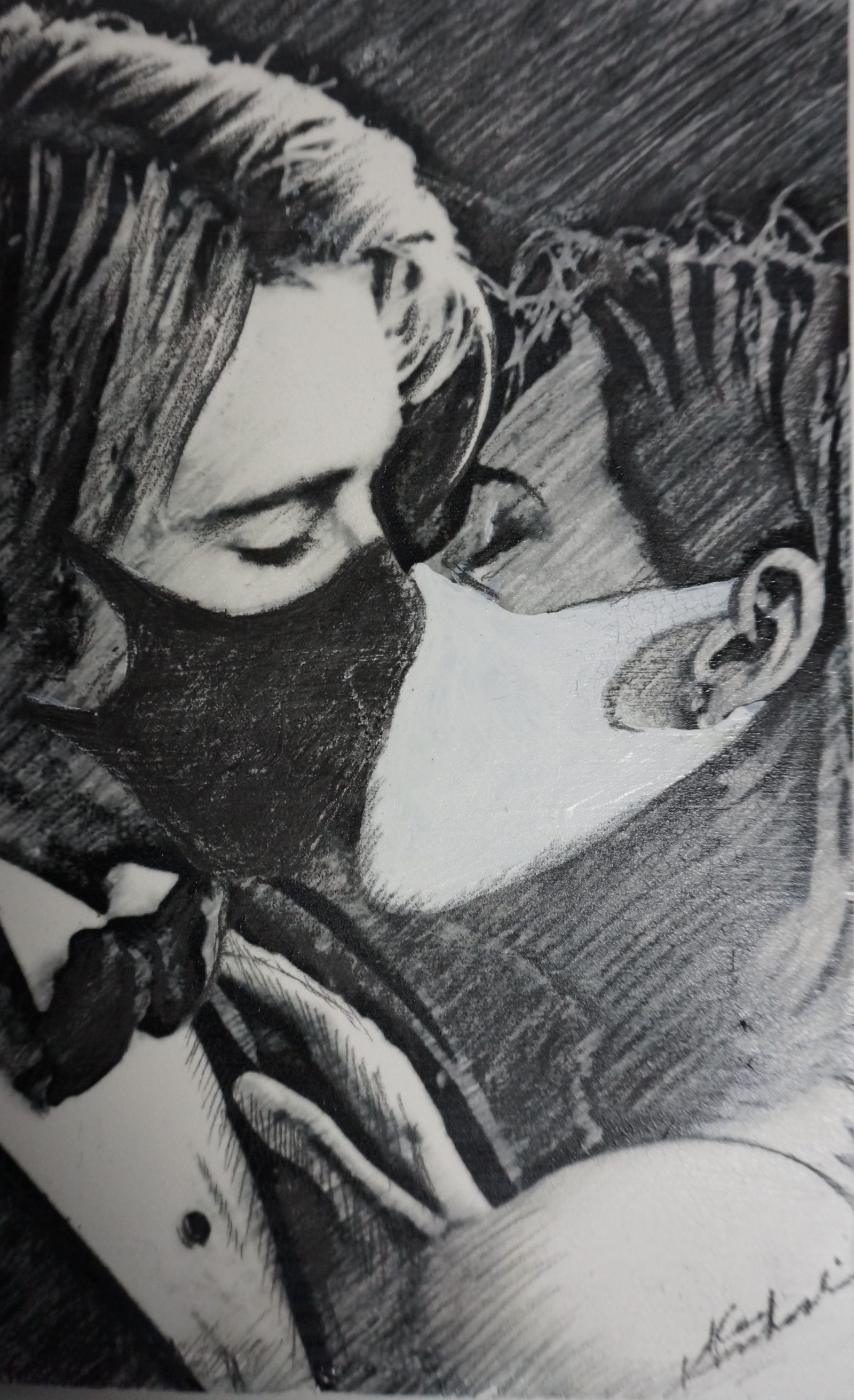 新しい生活様式 BOARD-PAINTING 2023.03.132022.04.04 厚生労働省が推奨する、コロナ禍における新しい生活様式の一例です。ま、感染すると思いますけどね。 原材料 : イラストボード 28cm × 20cm 鉛筆 2H~6B 2022年04月4日