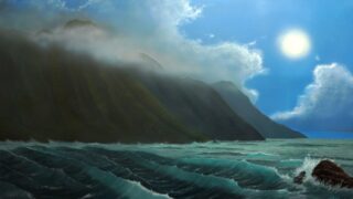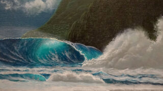 真夜中に強風の中で暴れる波を描きました。2014年12月、師と仰ぐRoy Tabora氏(ハワイ在住)の自宅兼アトリエに招待され、...