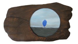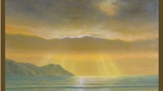 静かな朝の海に昇る朝日を描きました。初めて布のキャンバス(50号)に描いた作品です。   2007年06月03日