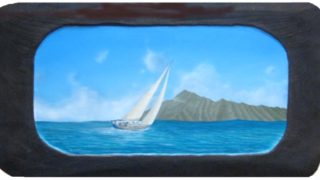 DIAMONDHEAD BEACHの沖をOFF SHOREの風に乗って走るクルーザーです。 ここのもう少しビーチよりの海は、CLIFFSというサーフィンのスポットで、多くのサーファーやセールボーダーを見ることが...