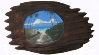 オアフ島ノースショアのサンセットビーチの朝です。ボードを持ったサーファーが波を求めて歩いているところです。 この作品のビーチ部分は、本物のハワイの砂を絵の具に混ぜて描いています。    2008年03月10日...