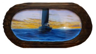朝日に向かって進むクルーザーです。なんとかお正月に間に合わせようと、大晦日に描き上げました。最近はカンヴァスが多いのですが、久しぶりのBoard Paintingです。 原材料 : 杉 70cm × 38cm     油絵具...