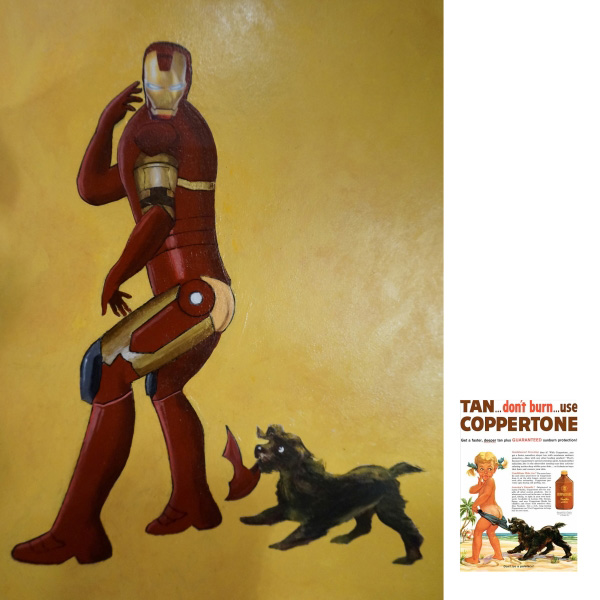 夏の定番 有名なコパトーンの主人公の女の子をアイアンマンに替えてしまったものです。