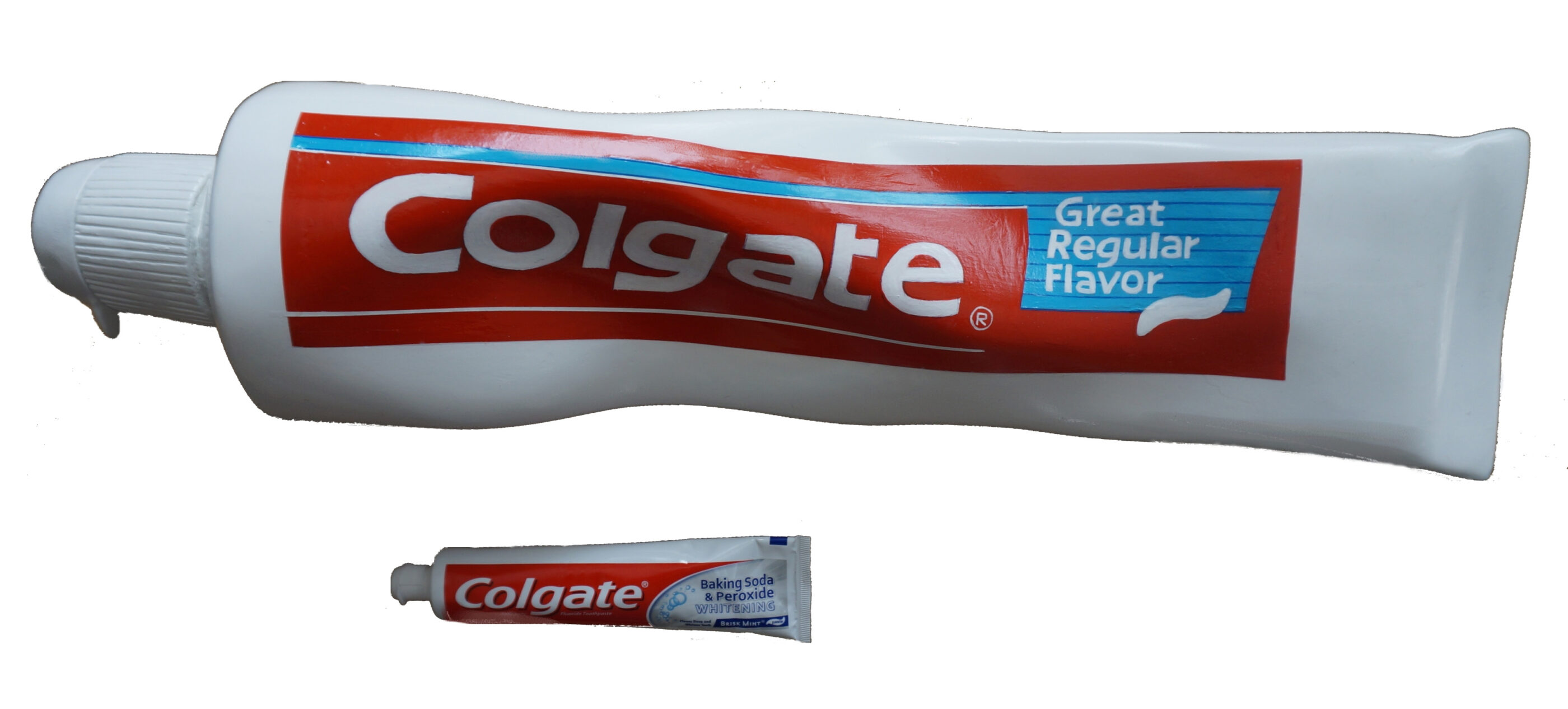 For a Big Mouth Ⅱ BOARD-PAINTING 2021.02.152017.01.17 皆さんご存知のコルゲートの歯磨き粉です。コルゲートは既に日本から撤退してしまったので、日常我々の目に触れることはありませんが、この作品は撤退前の良く目にしていた頃の懐かしいパッケージです。これは発泡スチロールで大まかな原型を作り、鉄の棒の芯を入れ、チューブのお尻の部分は真鍮板で補強し、その上から石粉粘土で形を作り、乾燥後紙やすりで形を整えています。紙やすりの費用だけで優に1万円を超えるほど、形を整える作業には手間取りました。コルゲートをモチーフとした作品は2作目ですが、前回の作品は本物と間違えた人がキャップをもぎ取ってしまうという事件が起きたため、今回は思い切り大きくしました。現在アメリカで売られているチューブと比較してみてください。 原材料 : 発泡スチロール・鉄・真鍮・石粉粘土 アクリル絵の具全 長 : 59cm 2017年01月17日