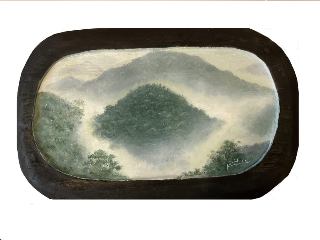 ひさびさのBoard Paintingです朝もやに煙る山々を描きましたずっと昔にこのような景色を見て、暫く動けなかったことを思い出しました。 原材料 : ケヤキ油絵具全 長 : 76cm × 41cm…