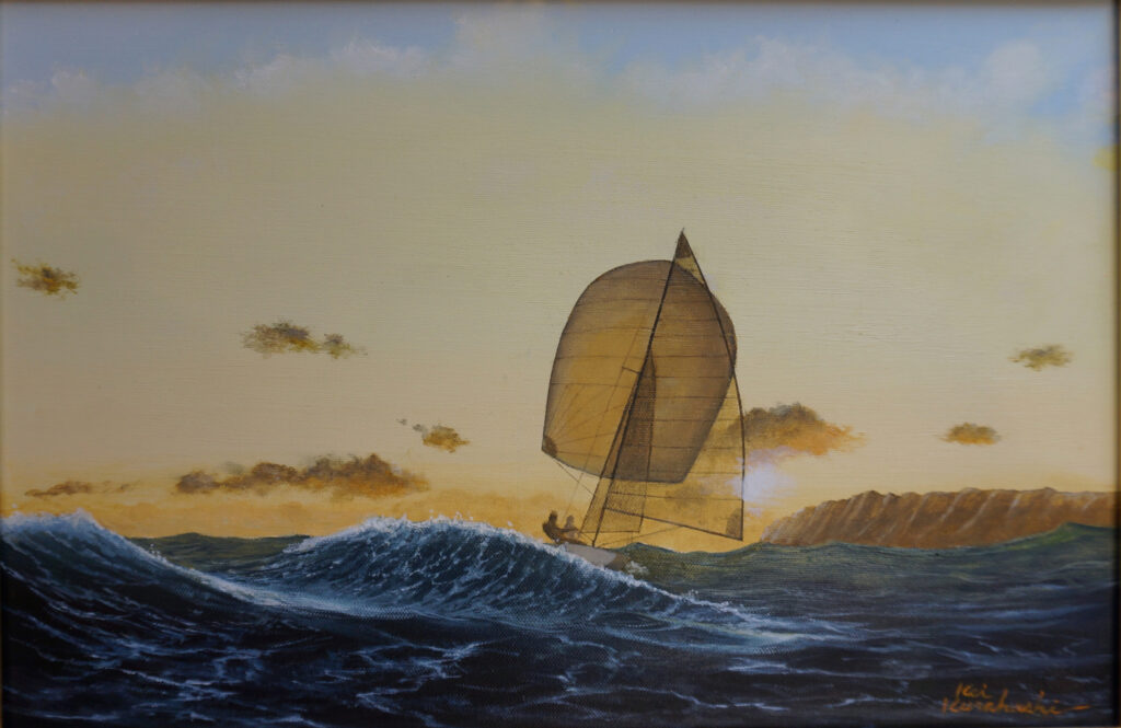 追い風を受け、大時化の海を母港に向けて走る Racing Dinghy 470 を描きました。急がないと日が暮れてしまうという切迫感が伝わるといいのですが。。。 2016年08月15日 …