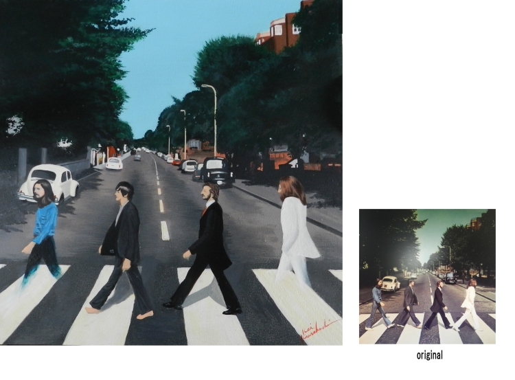 Get Back BOARD-PAINTING 2013.07.17 僕と同世代の人なら一度は聴いたことがあるんじゃないかと思うBeatlesのAbbey Road です。先日Beatlesが結成されてから解散までのドキュメンタリーを見て、彼等の演奏をまた聴きたいと思い、願いを込めてこの作品を作りました。 2013年07月17日
