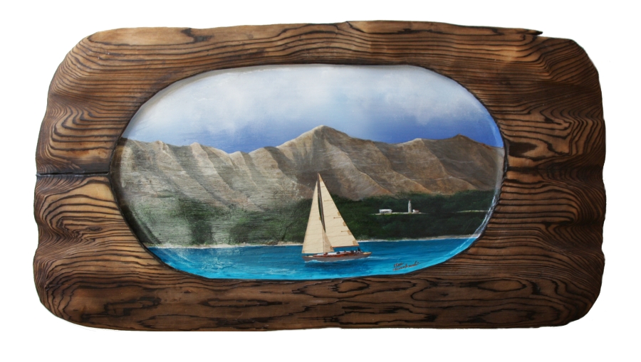 Sailing off the diamondhead beach BOARD-PAINTING 2021.02.222010.02.07 ダイアモンドヘッドビーチ沖のセイリングです。 2010年02月07日