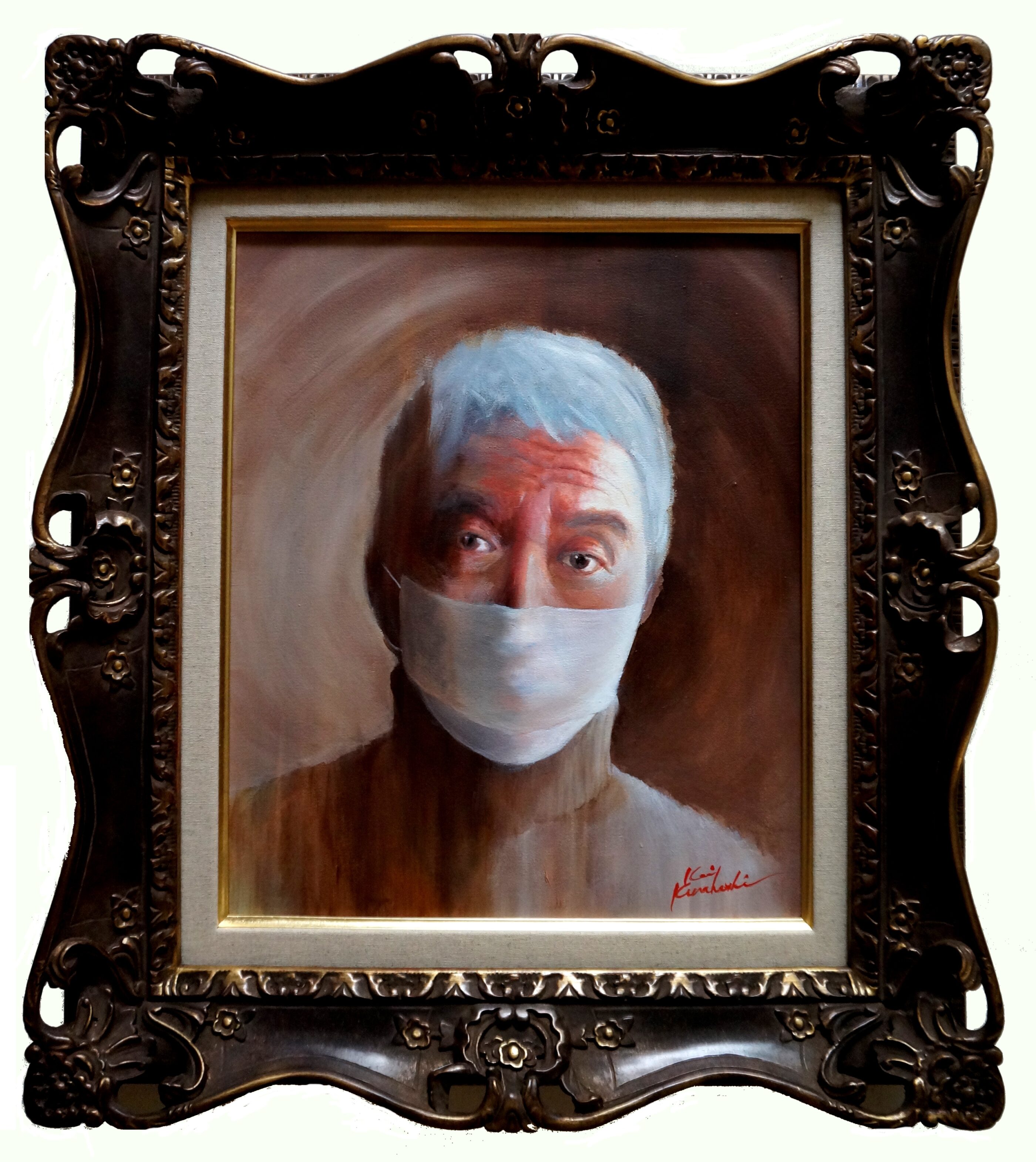 SELFPORTRAIT BOARD-PAINTING 2021.02.142020.06.06 新型コロナウイルス対応の自画像です。 早くマスクが外す日が来ることを心から待ち望んでいます。 2020年06月06日